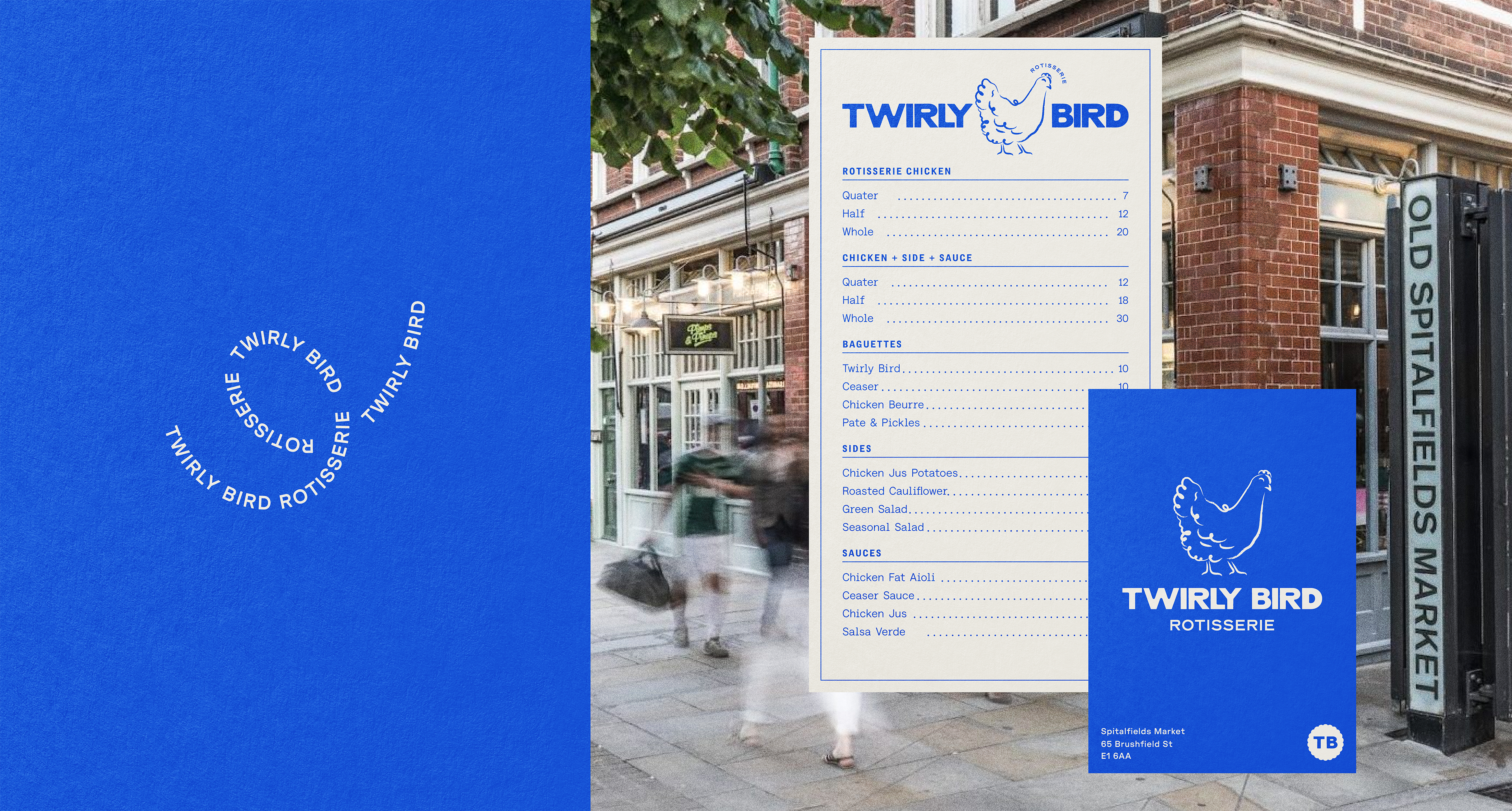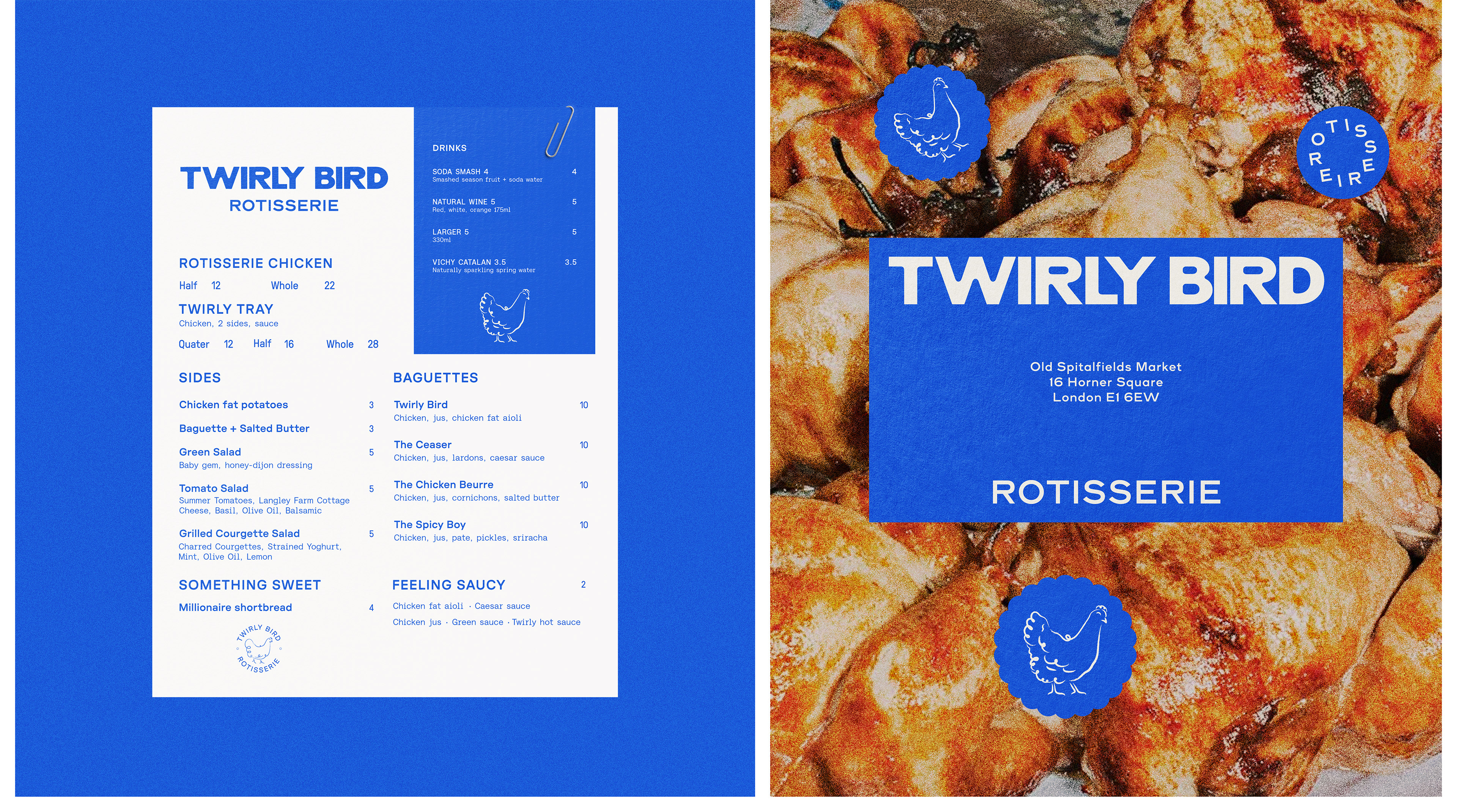 Tasked with creating the branding and identity for Twirly Bird Rotisserie. A new pop up venture in Old Spitafields market.